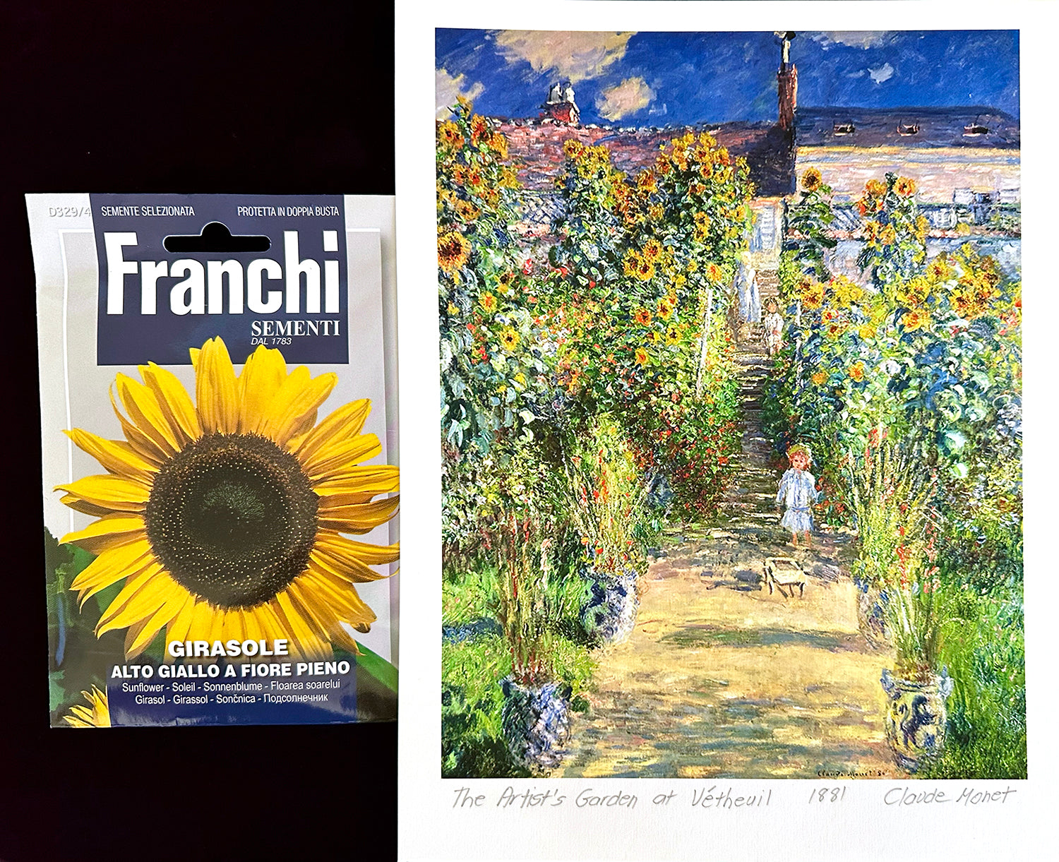 The Masters' Sunflowers - The Artist's Garden at Vétheuil by Claude Monet with Franchi Sementi Seed Packet